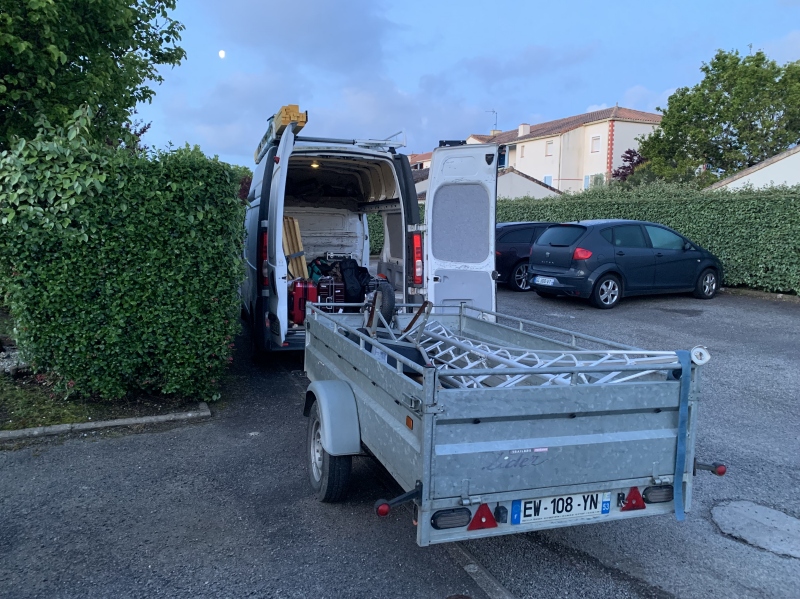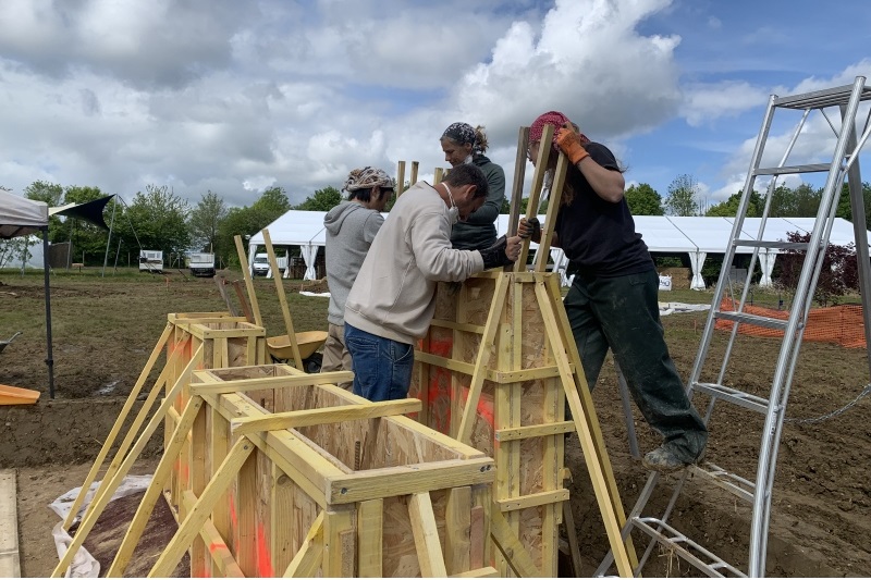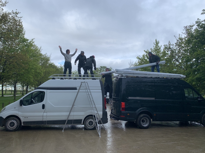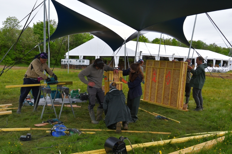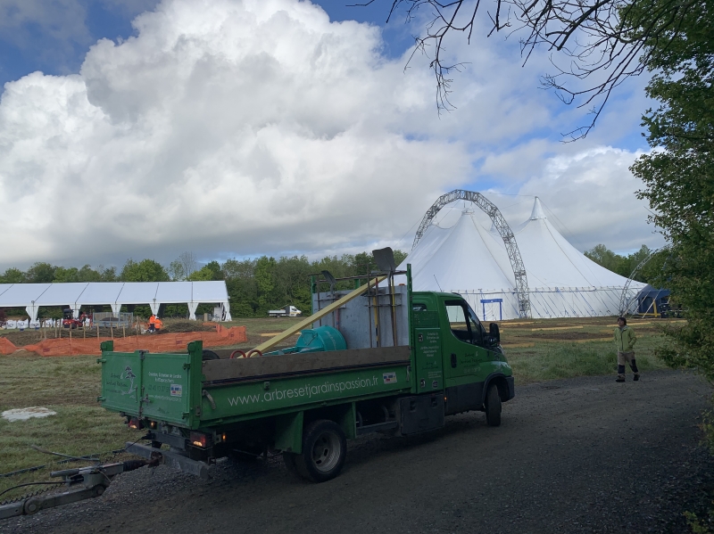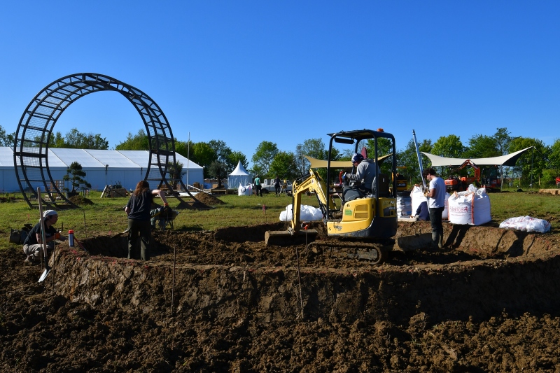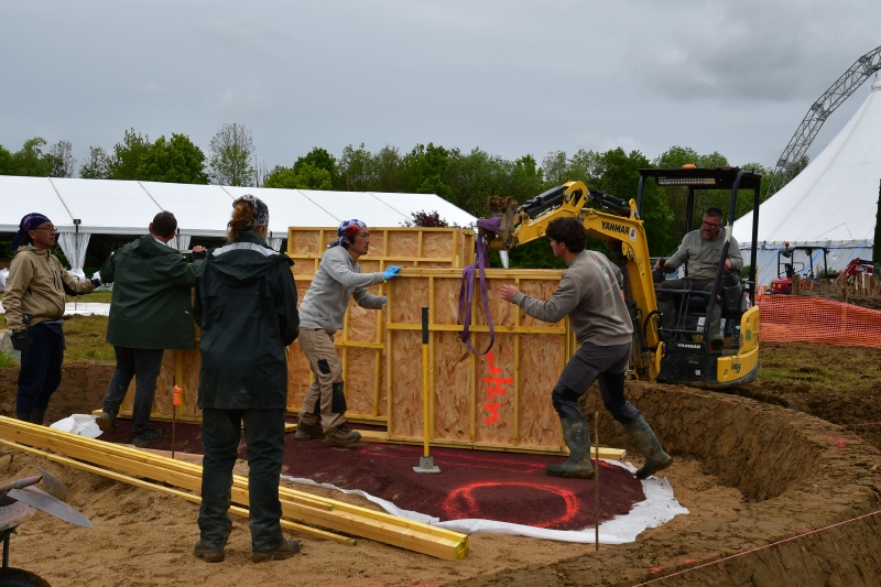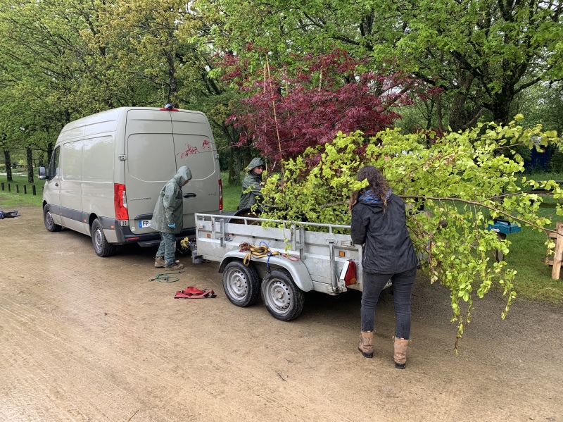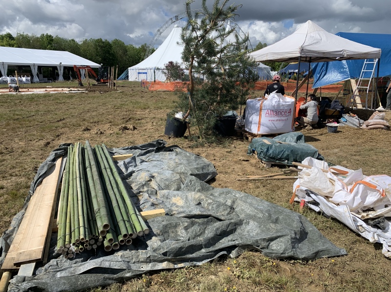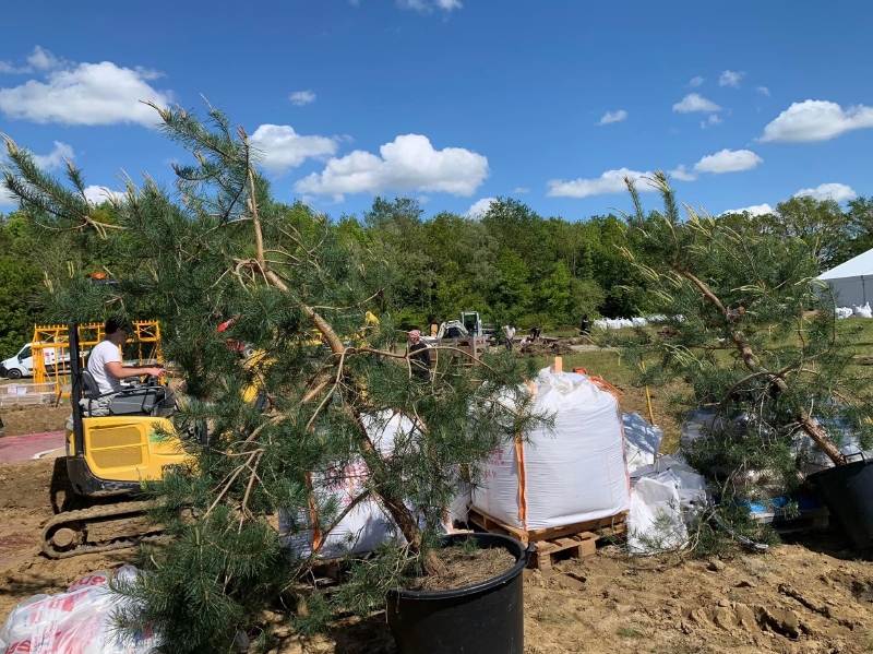 また、下草や樹木などは、生産者に近いメンバーがファームに足を運び画像を送付してくれたことで希望する樹が決まり、トレーラーで会場まで運搬、また別メンバーは共同生活するための民泊の家の手配など、皆の協力支えられフランスでの設営が始まりました。