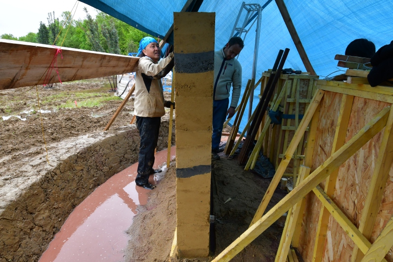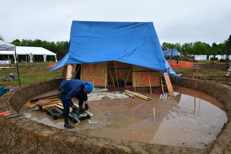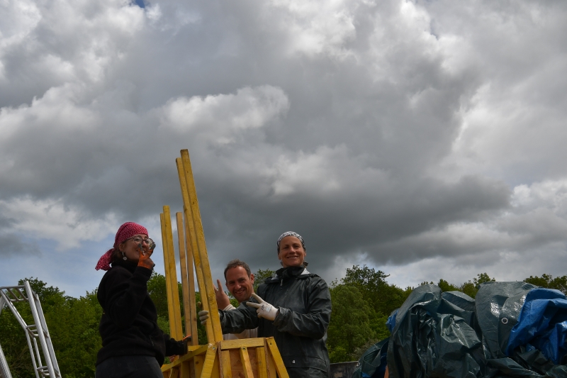 約2週間、交代でスケジュールを組み、前半は天候が安定しない中テントを張り、皆泥だらけになりながら作業を進めました。