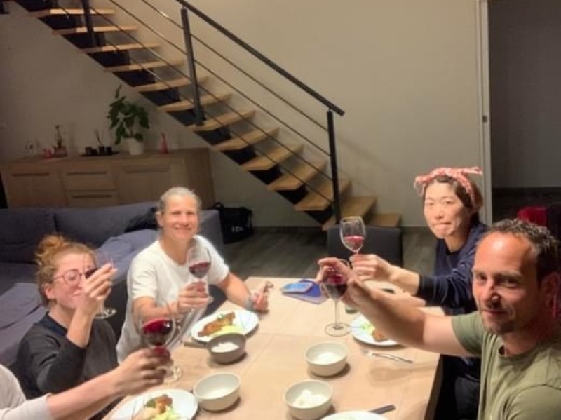 夕食は、それぞれシェフ担当を決めて得意料理をふるまい、酒を酌み交わし、お互いの近況を話しながらの楽しい時間でした。