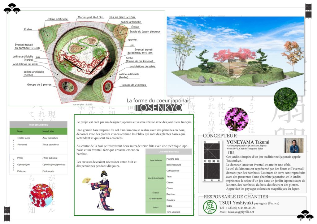また、その時のセミナーで通訳をしていたフランス在住の日本人ガーデナーの辻さんが、今回、大会運営営側とのやり取りと設営期間中の通訳も引き受けてくれて、本番までのメンバー達との打合せもしてくれて、計画がスタートしました。