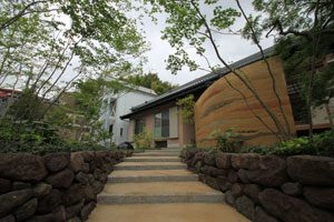 既存のエクステリア製品ではなく、 木、竹、土、石などの天然素材を使用することにより、 オリジナリティーのある外壁を演出します。 柔らかい独特の経年変化をお楽しみいただけます。