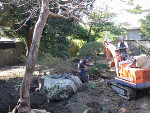 石組みは、重機が入れないので、昔ながらの工法で施工しましたが、2トン近くもある石でしたので、大変手間が掛かりました。