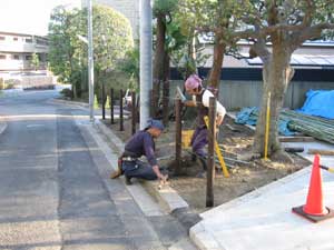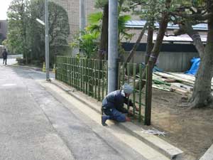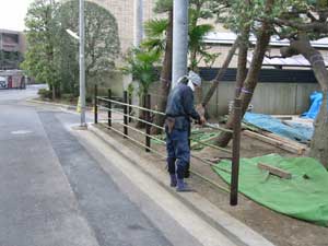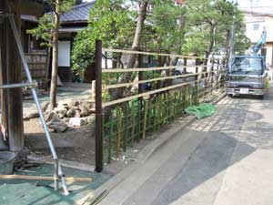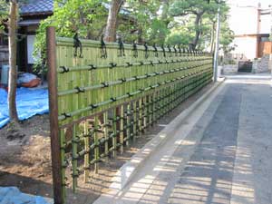 竹垣も、これだけ長い距離は、普段施工する機会が少なくなり、従業員共々いい経験になりました。連日投光器を使用して遅くまで作業し、22時近くなる日もあり、みんなで一丸となり完成させたので、大変思い出に残る現場です。
