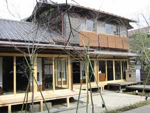 築75年の古民家を改築するという大掛かりなプロジェクトでしたが、「大正モダン」なイメージとおりの店内で、それに合わせて、車庫の形やデッキ、門周りをデザインして、本当に良い雰囲気のお店に仕上がりました。