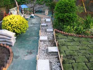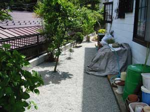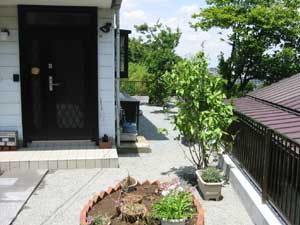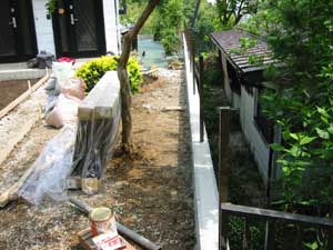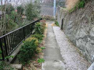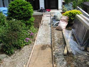 坂道・階段を登らないと行くことができない高台にあり、ユンボを入れるのも大変で、土・砂利、使用材すべての物は人力で長い距離を運びました。