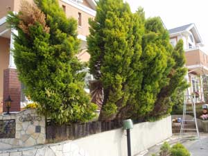 風で既存のコニファーが倒れてしまった為、植栽のやり直しのご依頼でした。