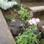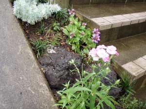 鳥海石を使用し、石組みをして、ロックガーデン風に仕上げました。様々な草花を植え玄関前を色鮮やかに演出します。今後が楽しみです。