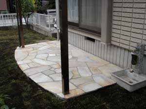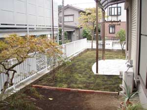 これから、小さなお子様が遊べる様に芝を張り、石英岩でテラスを造り大変喜んで頂けました。
