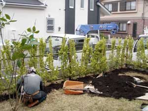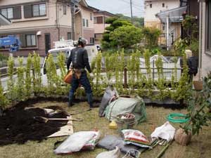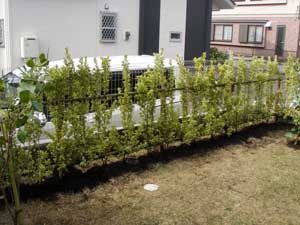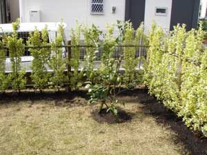 家を新築されたので、目隠しを兼ねて建物に合う生垣が欲しいとの依頼でした。