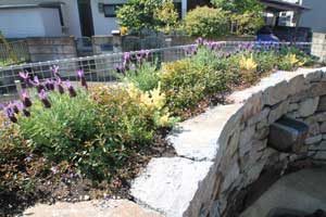 No.147 花いっぱいの石積みのある庭 小松石 美濃石