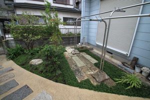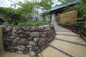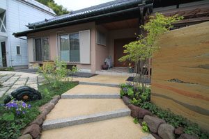 日頃から管理させて頂いている施主様から、家のリフォームにあたり現代住宅に合う庭に作り変えたいとの依頼でした。 また、今までの庭で使用していた材もなるべく組み換えて残したいとのご希望でした。