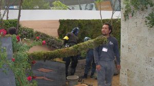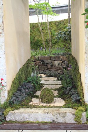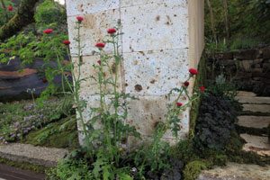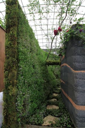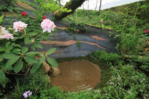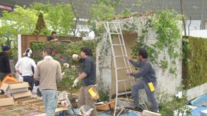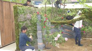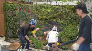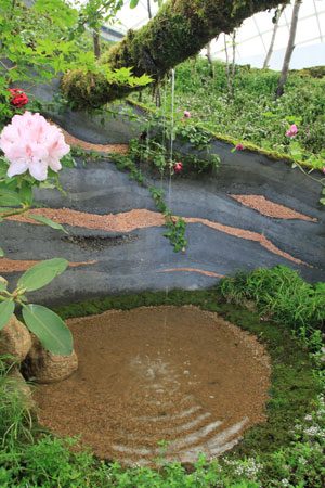 庭に関わる者として、被災地に何が出来るのかと考えた末、やはり私達は「庭」で気持ちを表現出来ないかとの結論になりました。ほとんどの庭を構成する材料は被災地の物を使っています。植木や下草は宮城、福島県の物。石や土などは茨城、長野県の物で作り上げました。基本コンセプトにもある様に、難しい事はなく人生暗く辛い時期があっても、困難を乗り越えれば楽しく幸せな時間が待っているという事を表現しています。はりぼての偽物ではなく、全て本物の材料で作り込み、より迫力のある空間に仕上がりました。今回は、各地の多くの仲間達に助けられ、当社のスタッフ共々言葉では表されない程、感謝しています。もうこの作品の形はありませんが、この作品に込めた想いを画像を見た人々が感じて頂けたら幸いです。