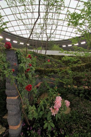 今回は、被災地応援の基本コンセプトの元、国際バラとガーデニングショウの一番大きいA部門に出品しました。 作品タイトル:~ 夜明け daybreak ~ 人生には、様々な困難や苦境があり3,11の震災では東北地方に住む多くの人々が、この事態に直面しています。あれから一年が経とうとしているこの時期だからこそ、私達「庭」に携わる者にしか出来ない事があります。作品を通じて日本を応援したいと言う強い想いが、この作品の基本コンセプトです。 作品は、石製の長い暗いトンネルや植栽で悲しい、つらい時期を表しその闇を抜けるとやがて「光」が射し、そこには五感で感じられる花いっぱいの桃源郷をイメージした空間を創り、人間の生涯という壮大なテーマーを石、水、土、木、花で表現します。 「朝の来ない夜はない」人生山あり谷ありですが、この作品を見た全ての人々が、ハッピーな気持ちになり元気が出たらという強い想いを込めたこの作品を提案します。