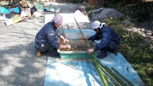 普段管理させて頂いている施主様から、古くなっ竹垣の交換の依頼でした。