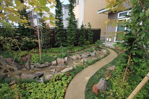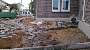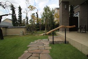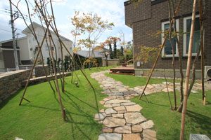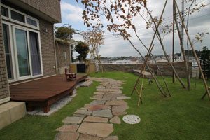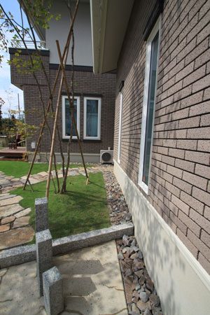 建物を新築された施主様が、当社の作品を気に入って頂きご依頼がありました。 版築壁と芝を取り入れること以外は、全てお任せで作業させて頂きました。