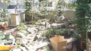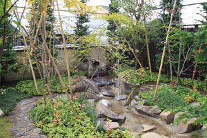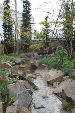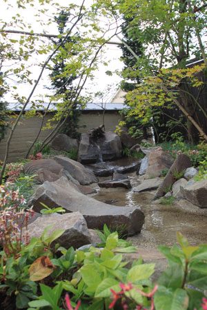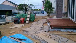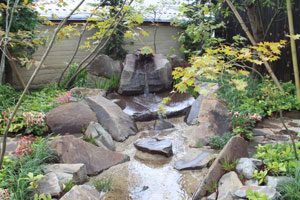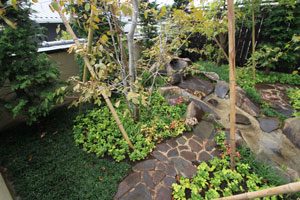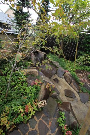 3ヶ月に及ぶ大変な工事でしたが、石や木、土などの素材選びにこだわり仕上げました。 石積み、石貼りは鉄平石を使い、根府川石を使って自然な流れを表現しました。 植物がこなれてくると、更に素敵な空間になる事でしょう。とても喜んで頂けました。