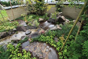 No.159 版築壁と流れの雑木の庭 鉄平石 根府川石