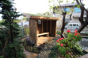 当社の作品を見て、ご依頼を頂きました。家庭菜園での作業後に休憩出来る小屋が欲しいとの事でした。