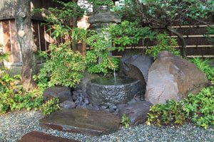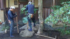 日頃管理させて頂いている施主様から、冬季に施工した竹垣の前につくばい組みをして欲しいとの依頼でした。