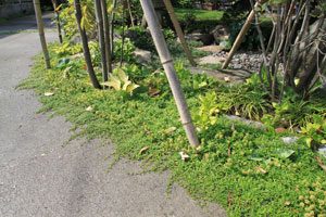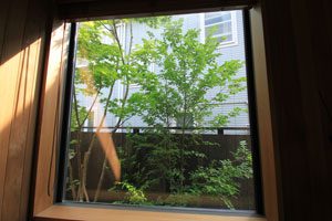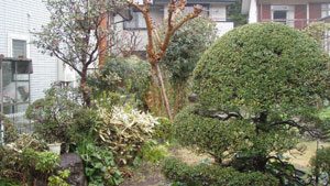 建物を新築されるにあたり、建築士さんと同時進行で庭の設計が出来、色調や素材の質感など、建築と溶け込む様に意識しました。また、庭の先には鎌倉宮の杜があり、その杜から緑が続く様にデザインしました。