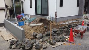 日頃管理させて頂いている施主様の、ご家族の新築にあたり庭と外周りの工事のご依頼でした。