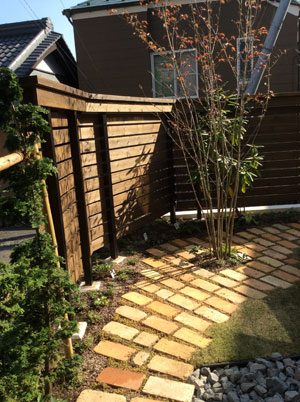 限られた敷地でしたが、天然の素材で構成しましたので既製品にはない味わいのある空間になりました。これからご家族で楽しんで頂けます事でしょう。