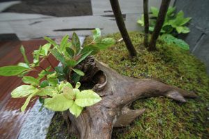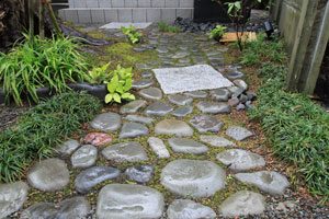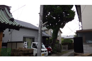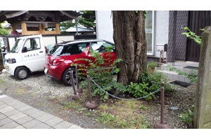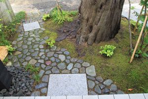 No.166 お寺の保存樹を取り込んだ庭 みかも石 川玉石 鎌倉石(古材)