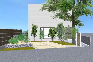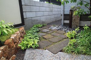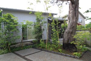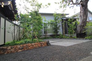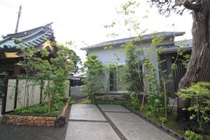鎌倉のお寺の山門の脇に新築された施主様から、鎌倉の街の景観を損ねない様な、外部空間つくりのご依頼でした。