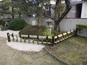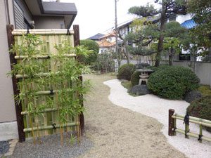 日頃から、お手入れに入らさせて頂いているお宅の竹垣の交換と、減ってしまった砂利を足しました。