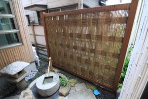 坪庭の竹垣が古くなったので、交換のご依頼でした。