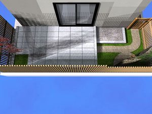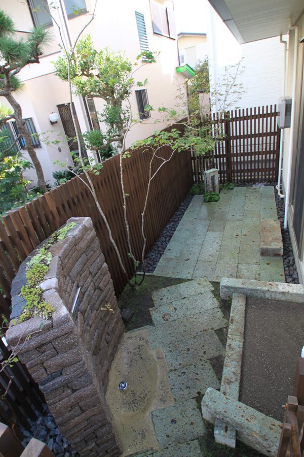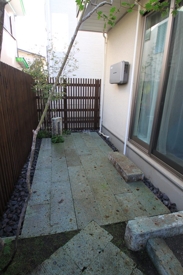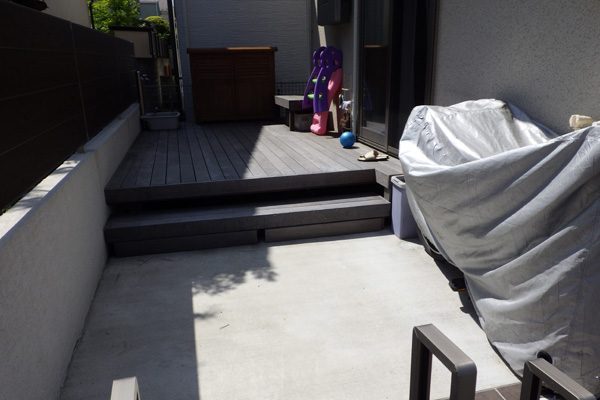 数年前、新築時に造った外空間でしたが、使い勝手が悪いので新たにつくり変えのご依頼でした。テーマは「子供の楽園」お子様達と楽しめる様にとの事で、後は全てお任せでした。