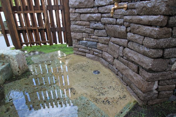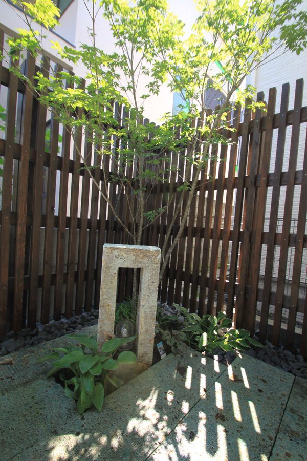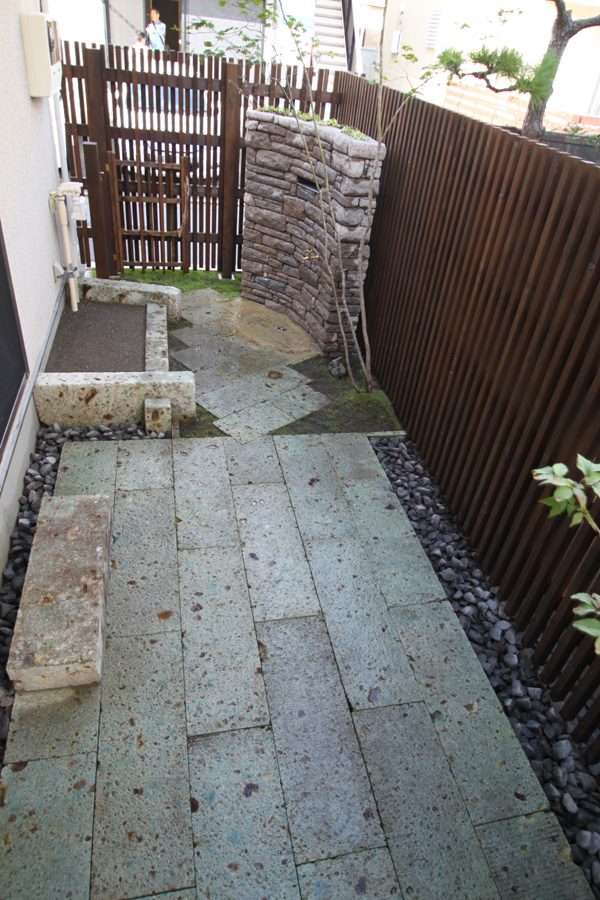 丹波石を積み上げた壁泉の水遊び場を作り、大谷石で作った砂場、同じく大谷石のテラスではプールやバーベキューなど楽しめます。 日々の生活をより豊かなものにするお手伝いが出来ました。きっとお子さま達との多くの思い出が詰まったお庭に育って行く事でしょう。