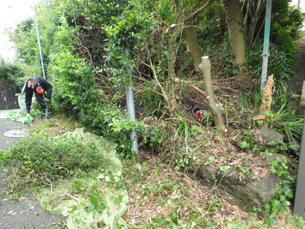 3代に渡りお住まいの施主様から、植木が大きくなってしまったので、植栽の見直しと土留めのご依頼でした。