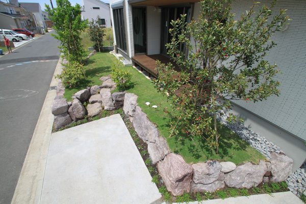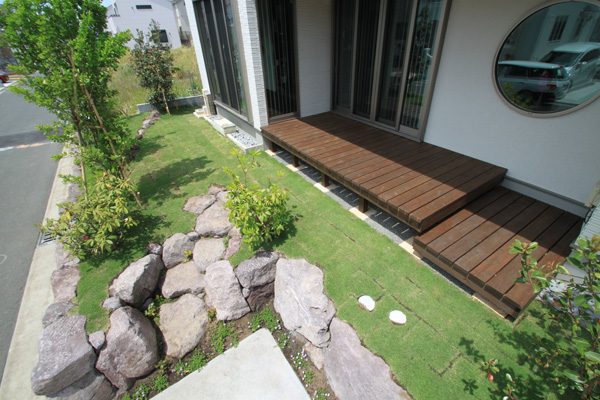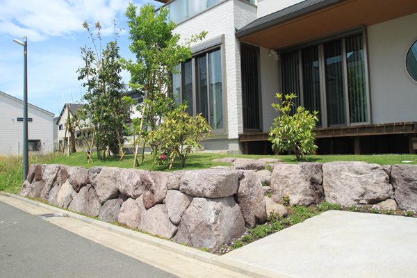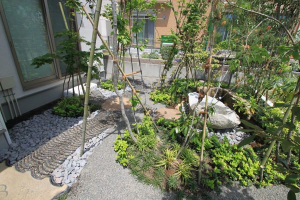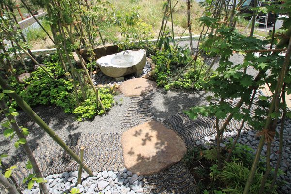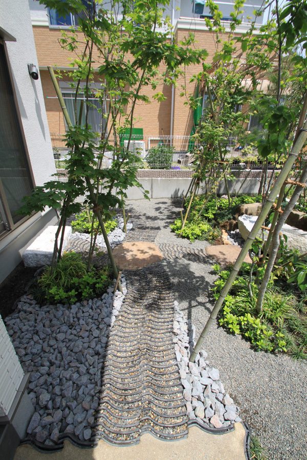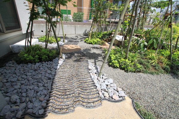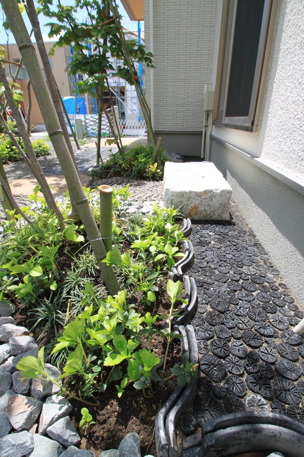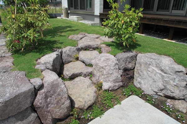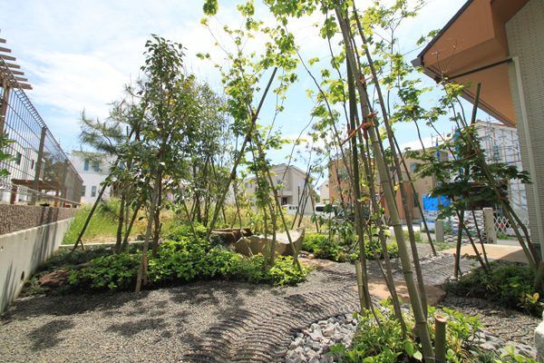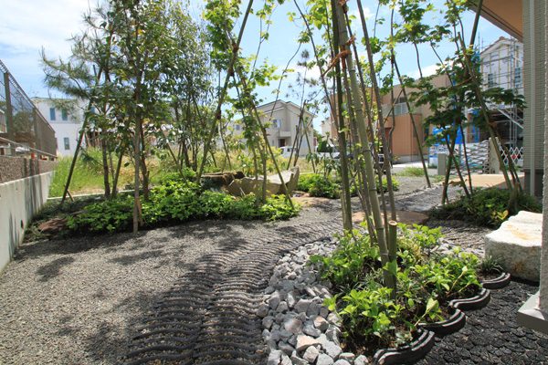 アメリカと日本人のご夫婦から、日本のテイストを感じられる庭をつくりたいとのご依頼でした。大手ハウスメーカーのプランが気に入らず、当社にご縁がありました。