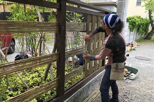 数年前の作庭時に既存の塀を残したが、強風で倒れた為に新たに塀の作り替えのご依頼でした。