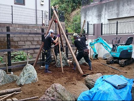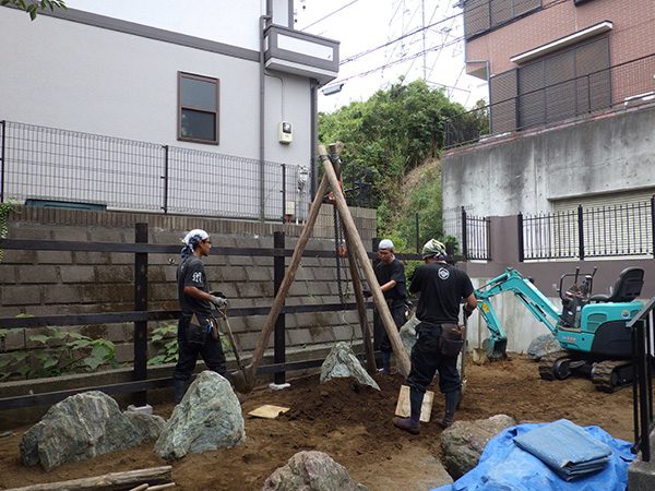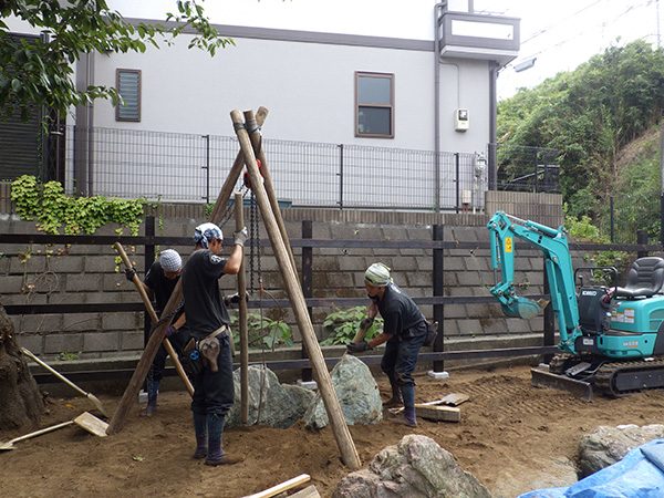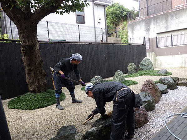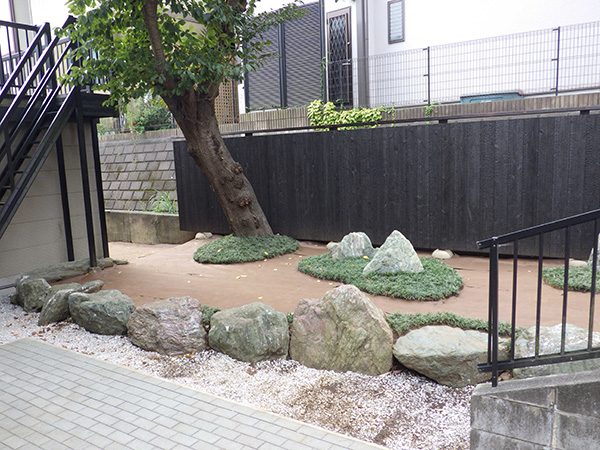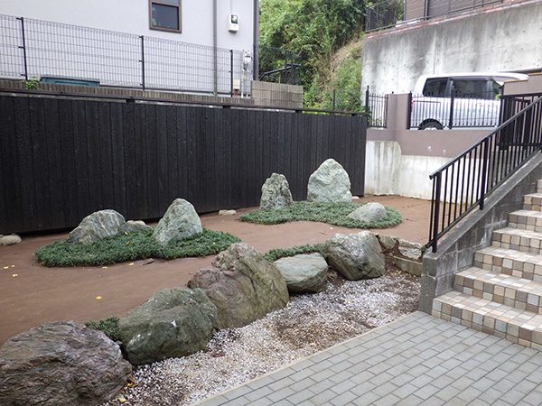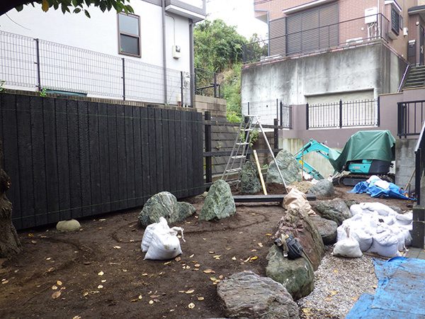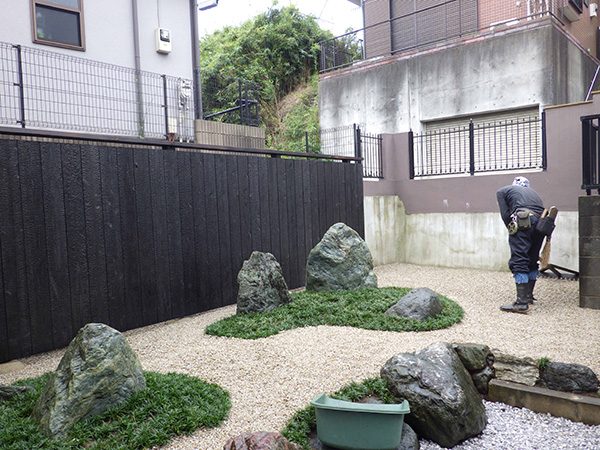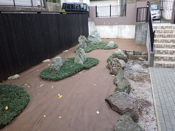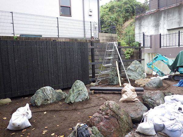 リノベーション物件を購入された施主様から、庭の雑草対策も含めた相談を受けました。既存の群馬産の三波石に合わせて石組みの庭をご提案させて頂きました。