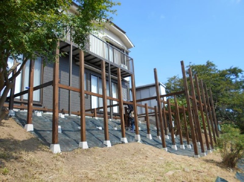 No.195 傾斜地ウッドデッキ作り替え