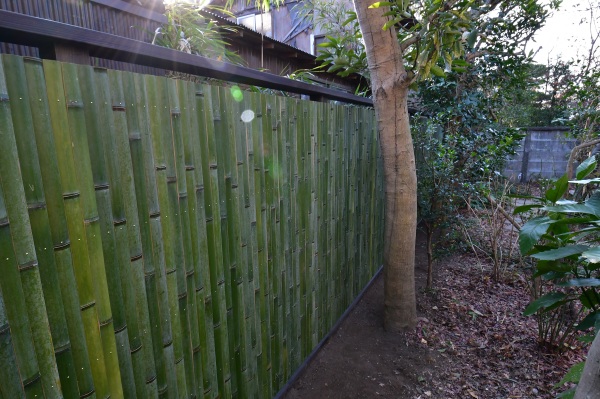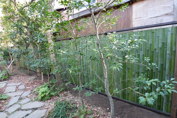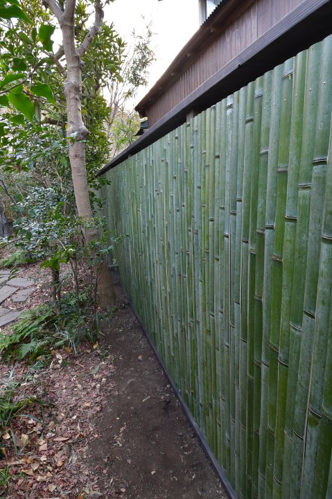 現代住宅にも違和感なく溶け込み、鎌倉の街並みにもマッチする竹塀をデザインしました。シンプルであっさりとした塀が庭を一層引き立ててくれます。