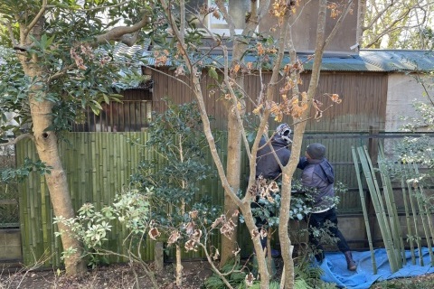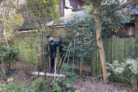 庭の背景となる竹塀と既存デッキの補修のご相談でした。