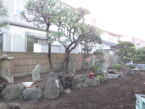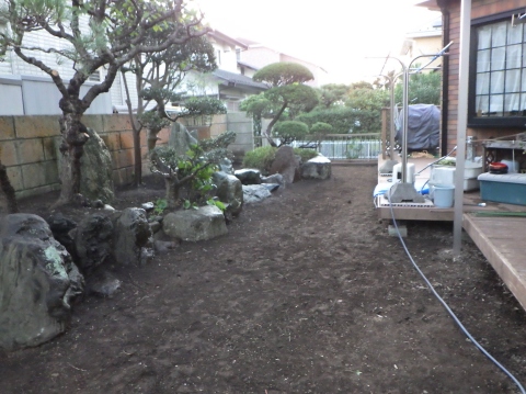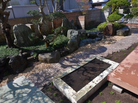 先代が作られた庭の作り替えのご依頼で、庭石を撤去して、庭で楽しみたいとのご希望でした。