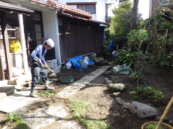 鎌倉で古民家を購入した施主様が、リノベーションし、カフェをオープンさせるのにあたり庭の改修依頼でした。