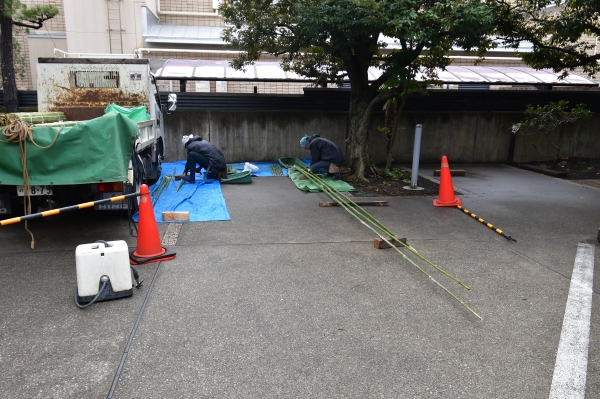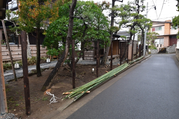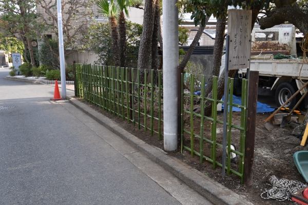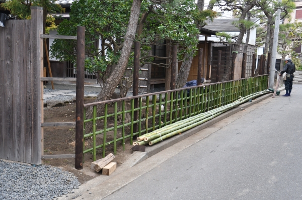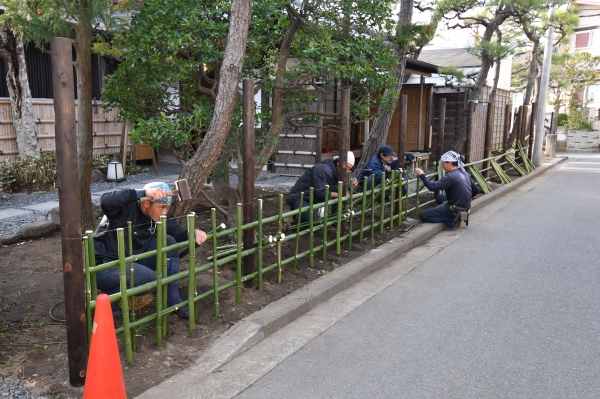 古くなった店舗外回りの竹垣の作り替えのご依頼でした。