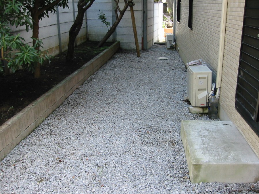 防草シートの上に、お好みの砂利を敷き、見た目も美しくなり、草取りの労力も少なくなり、大変喜んでいただけました。