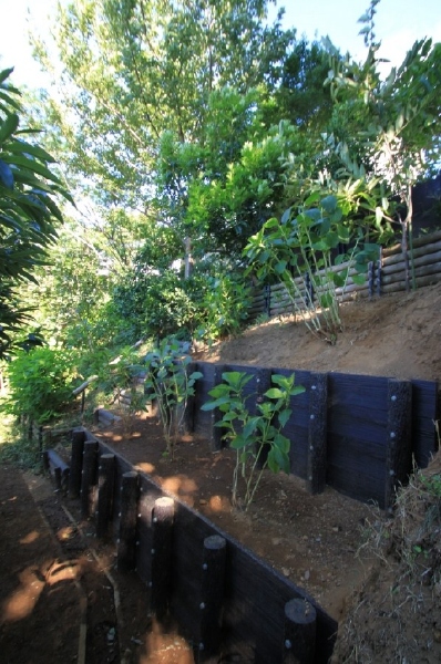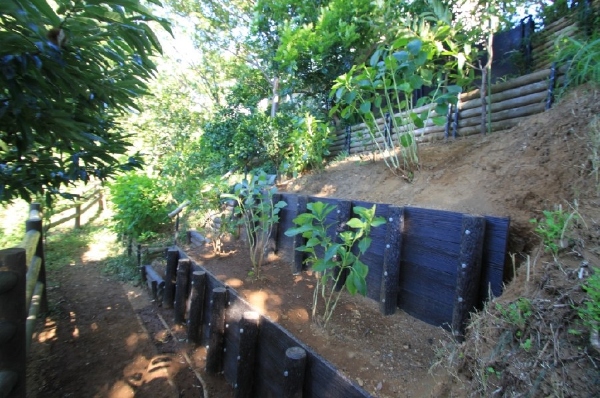 法面敷地を果樹や植物を植えやすく、歩けるようにしたいとのことでした。
