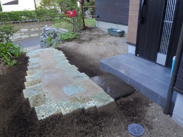 家を新陸された施主様から、玄関アプローチと庭の植栽作成のご依頼でした。
