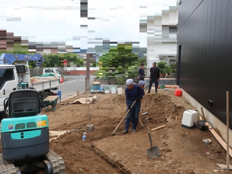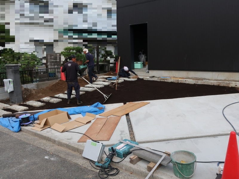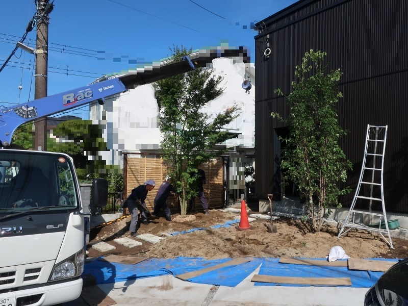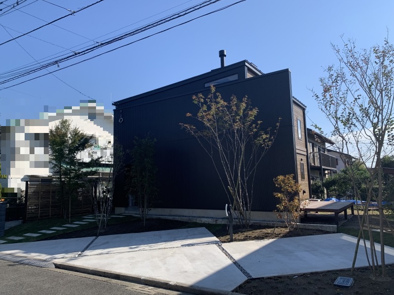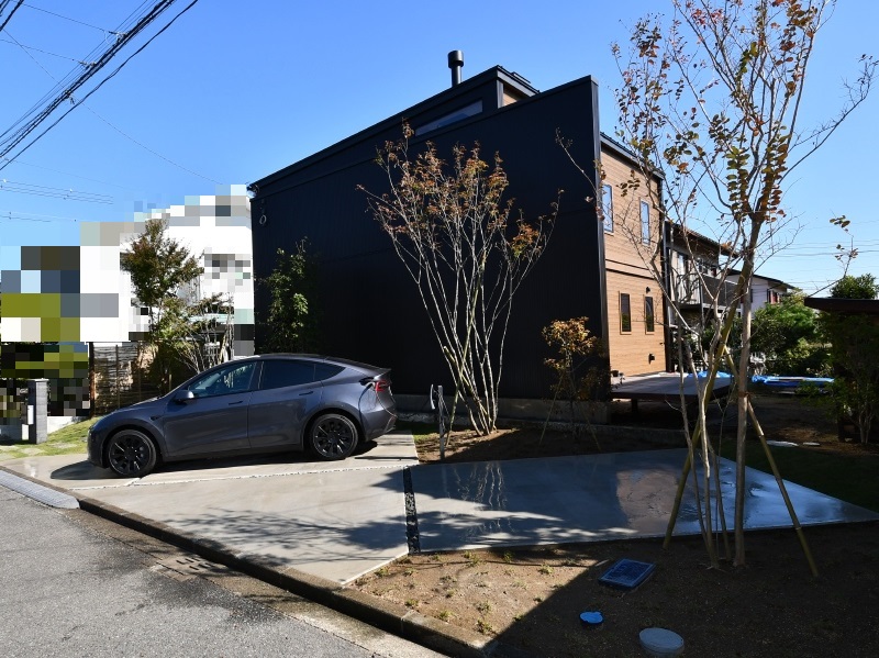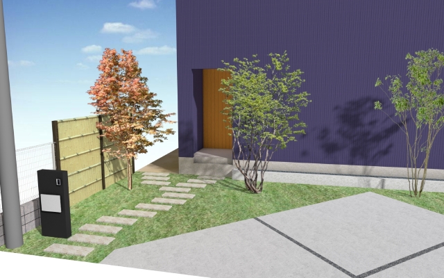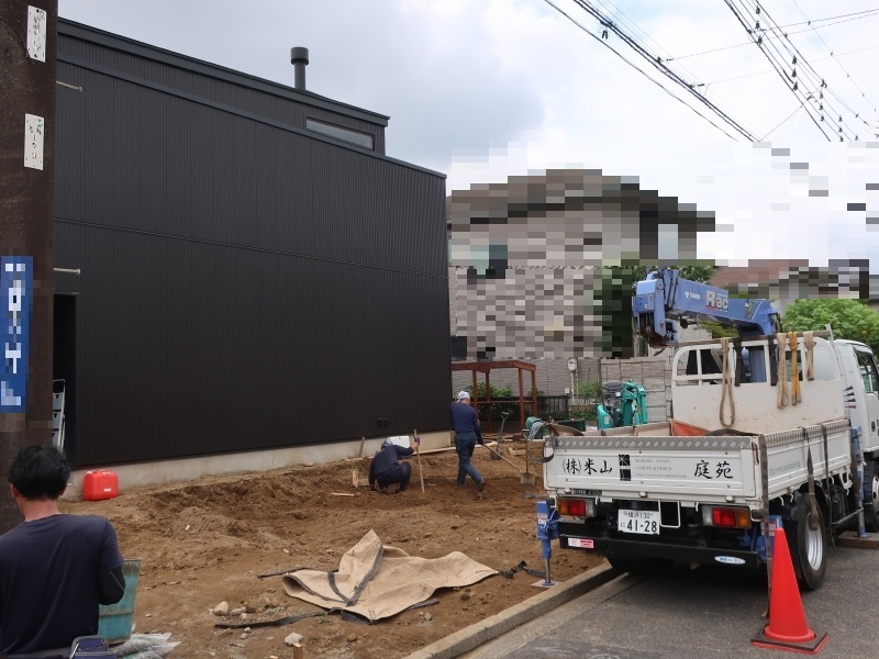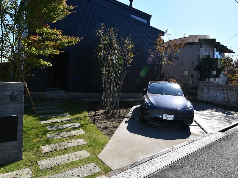 家を新築された施主様が、ハウスメーカーから提案された造園プランが好みに合わず、当社へ車を2台駐車することが出来、建物に合う庭・外構をご依頼されました。