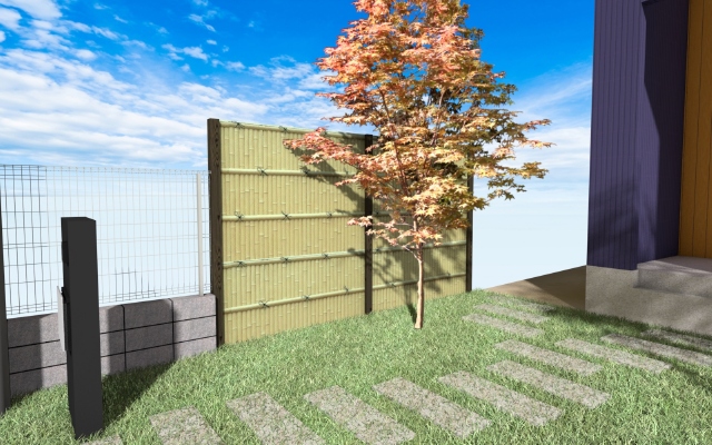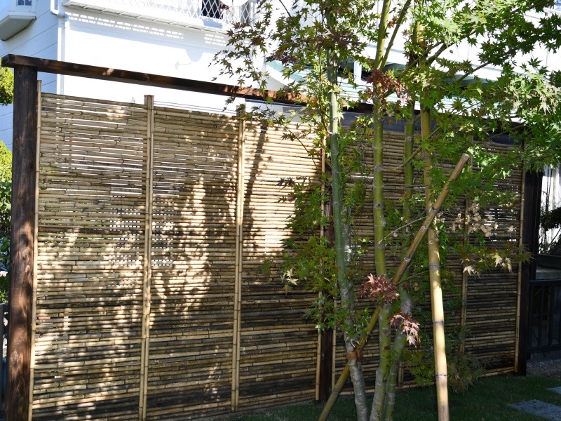 No.231 BESSの家 雑木の庭・外構 大谷石 オリジナル版築門柱 御簾垣