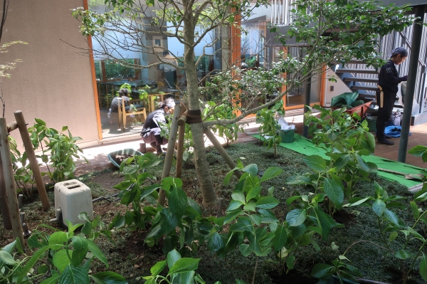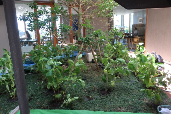 ホテルはR134号線の海沿いに立地しており、植栽環境は塩害風害でかなり厳しい状況ですが、 比較的風の当たらない中庭や入口周辺への植栽をご提案しました。6月頃にはブルーの鮮やかなアジサイの花が、 訪れるお客様を楽しませてくれることでしょう。