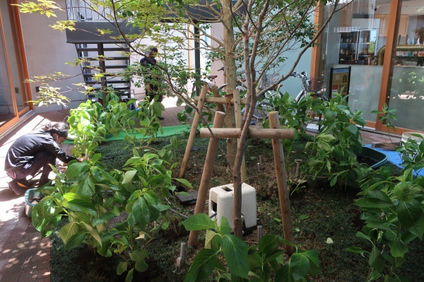 当社が管理している由比ガ浜の松原庵が2021年に腰越にホテルをオープンしました。 ホテルのコンセプト、イメージカラーに合わせて、青のアジサイを植栽したいとのご依頼でした。