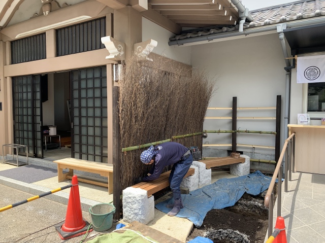 感通寺受付のリニューアルに伴い、腰掛けなどを取り入れた空間づくりのご依頼でした。